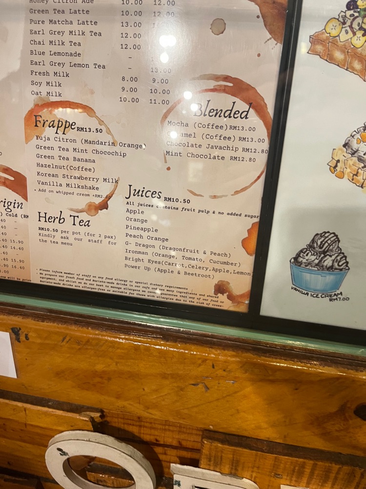 Taste good too and no sugar added. If you dont want coffee can try their juice here. If not mistaken not all October branch had this menu