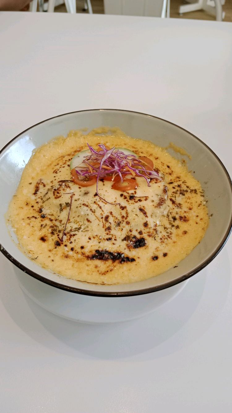 Never thought of the combination of avocado with soursop or pineapple. Definitely the last picture shown on the menu is wrong😂 The combination goes well😃😃 The taste of soursop comes 1st, followed by Avocado, then pineapple. After 1st sip, the 3 layers drink will become 4-5 layers as pineapple will goes down. Very stomach full juice . Cheese baked rice with chicken chop nice also, rich in cheese, not heavy taste