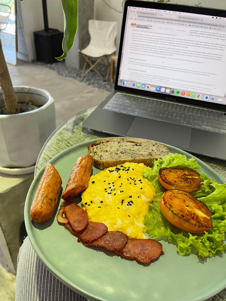 This was my first time here , did not know this cafe located at somewhere a lil bit difficult to find a parking . (Klink family , opposite to QE) Ordered : 1. Plain croissant - crispy yummy rm8 2. Filter coffee -rm15 3. Braised beef rice -rm14 Overall not bad , good place for a meeting on weekday