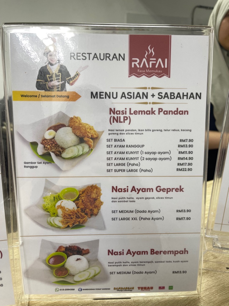 Have you try here yet? Hidden gem found at Market 88! Restaurant name is different from Reviewbah’s name. Actual name is RAFAI RASA MEMUKAU RESTAURANT. Their main menu or aka signature dish is BAMBANGAN & TUHAU 🥹😋 sabahan favoriteee nii hahaha So we ordered tuhau & bambangan ayam goreng paha, they have various varieties of chicken parts including thigh, chicken wings, breast, and fish too! THE BESTTTT I tell you.. I don’t know where else serves such food but my first impression of this dish here is so good! My eyes and heart went cloud9 🤣 Ok maybe it’s good for me, and who knows you have different standards? I’d suggest you try and comment what you think 🤭 Fyi, one of the chicken weren’t fully cooked so I asked them to redo, and they’d be glad to redo back for you. Although idk how the procedure is but importantly my tummy is happy. So pls check your chicken if they’re fully cook before you eat ya.. They open everyday Monday - Sunday 10am-9pm Located same row as SMOKIES, facing housing area of Austral Park.