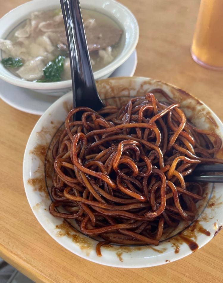 他的干捞面不错吃很香,生肉片也是薄薄的… 只是汤的味道有点很咸 价钱也起到12令吉一碗了