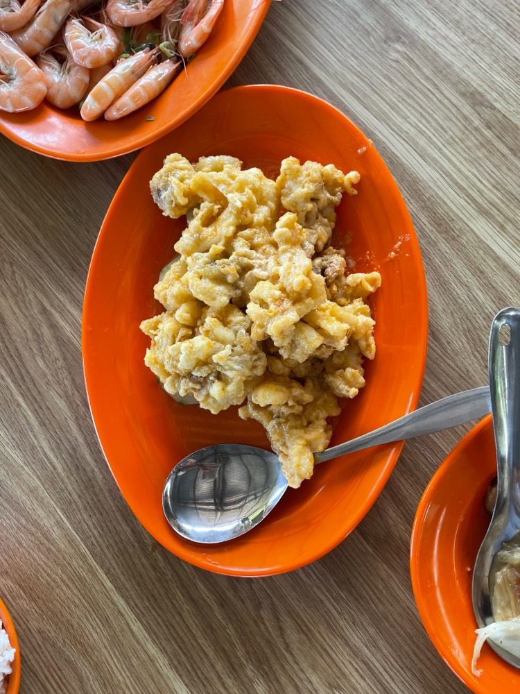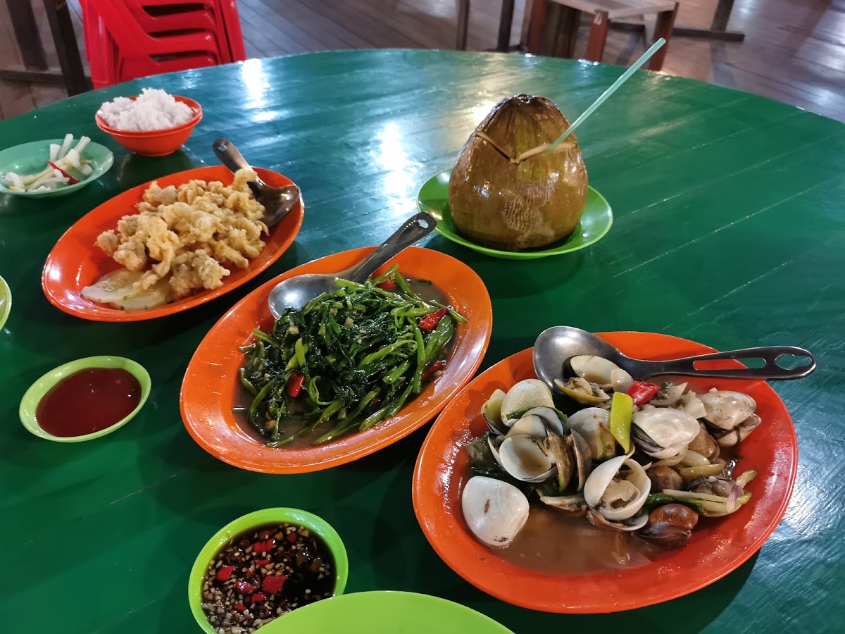 All fresh seafood with good taste. The shell and prawns are so big and taste so nice. Fried mee hoon is moderate. Price is expensive. Environment is Macam kampung style. Half self service. Ada service charge lagi. I guess pay for the fresh.
