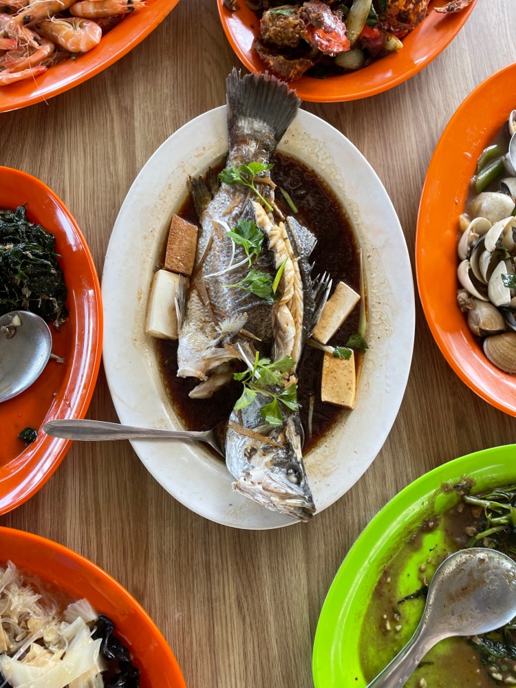 Pandangan Cantik sekali 😚 kami seramai 10 orang . Order 10 jenis makanan. Seafood fresh tapi kebanyakannya rasa masin terutamanya kankong belacan .. aduii masin ya .🥺🥺. Harga ada mahal sikit ..