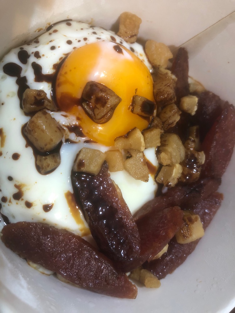 这是我长那么大以来第一次吃猪油渣拌饭,之前只是吃过猪油渣配生肉面。 猪油渣拌饭 rm15 - 猪油渣炸的很好,很脆口!不会有猪骚味,也不会有那些油的味。因为通常在外面吃到炸的食物多多少少会有一些油耗味,会让你感觉恶心。这个真的没有油耗味!脆口的猪油渣搭配上咸香的酱油味,经典的腊肠再搭配上半生熟的荷包蛋拌入热腾腾的一碗饭!绝配呀!尤其是那个半生熟的蛋黄,把它弄破给搅拌一起。真的好邪恶呀!瞬间觉得会肥一圈吗🫣 - 这个套餐会附送一碗当天熬煮的例汤。那个汤不是随随便便的,不是平常那种sup kosong。是老板娘她们慢慢熬出来的汤。今天得到的是白木耳香菇鸡汤。我太饿了,忘了拍照。 领取食物时,老板娘还亲自告诉我要尽快吃。别放太久,因为冷掉了会没那么好吃了🫡。记得啊!要尽快吃呀!老板娘说的👉🏻 期待以后有更多的新产品🤩