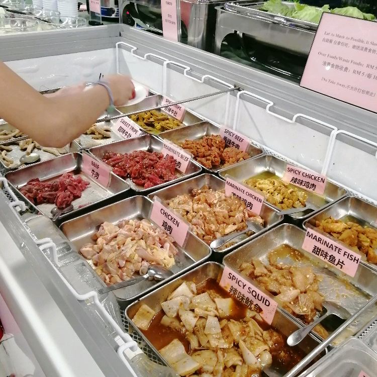 Spacious, good airflow environment. Raw ingredients many choices, nice beef, serve no pork. Cooked food many choices and very nice, refil often (love the chicken wing, cury beef) Fast service Price before 1/7/22 is RM 45 per pax only, very worth. More photoes can view at their fb.