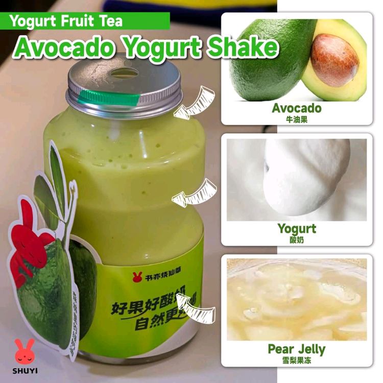 Avocado yogurt shake Rm15.90 : should be in a bottle, but bottle unavailable, put in bigger paper cup. Avocado taste not strong, ada coconut milk, covered by yogurt sour taste, pear jelly good texture.