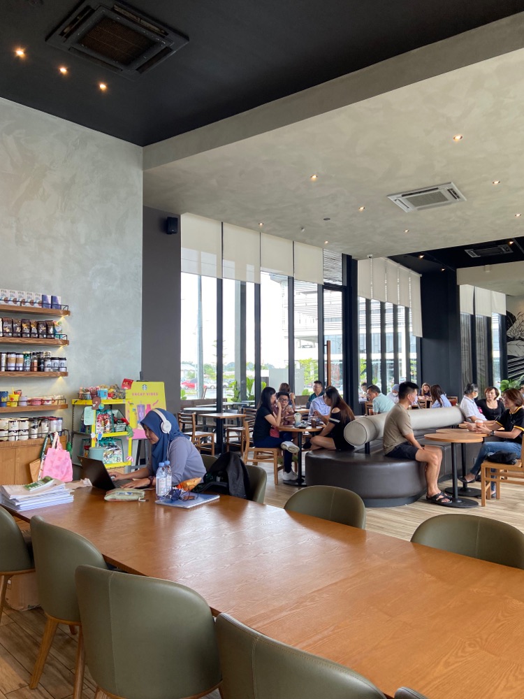 Starbucks being Starbucks, such great workplace with different type of seatings. What I love bout this branch is the full glass window building with roller blind that you can adjust. I changed seat few times to make space for others and enjoyed the different views I get, be it seeing the different age groups gathering or the outdoor. Well trained staff that is clear with their responsibilities and ready to help. Ordered Chocolate Cream Chip Frap with No sweet. My personal preference and enjoyed it🤭