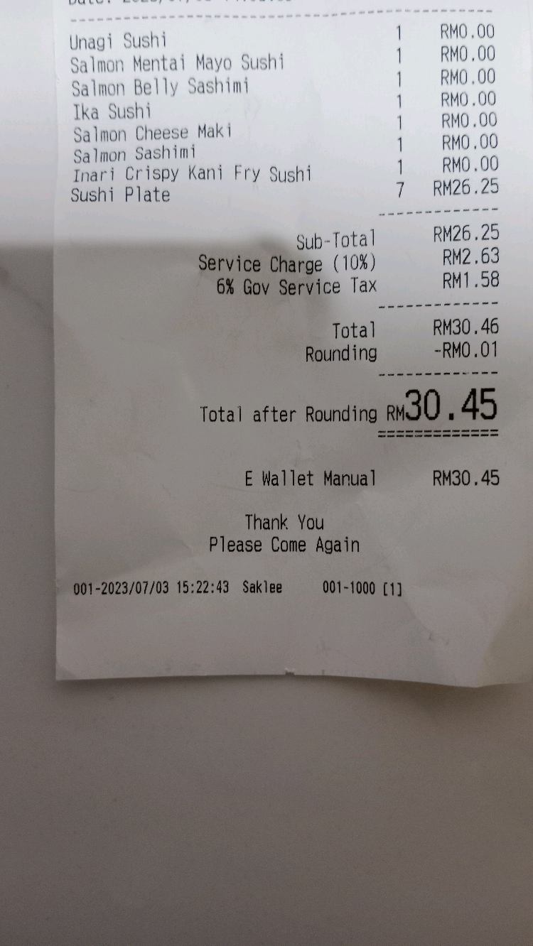 RM3.80per sushi plate! Saba shio cook with microwave = dry saba and BURNT taste Suggest only eat sushi plate next time