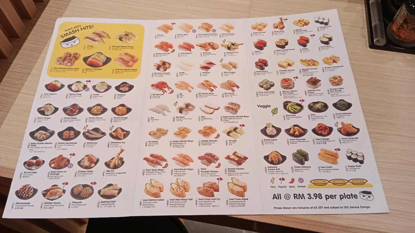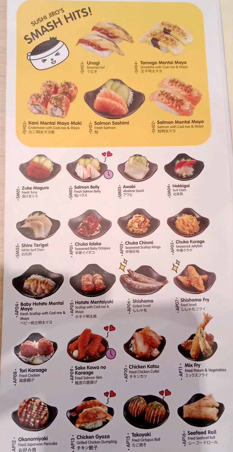 Sushi Jiro is authentic Japanese brand & they just opened their 14th branches at Suria Sabah, KK, Sabah recently. It is full of customers due to newly opened, nevertheless I'm lucky to get a table near the conveyer belt. I love to see chefs in action of cooking & preparing the sushi, katsu, ramen, udon, garlic rice & etc. Here's what we've ordered: 🍜 Spicy Paitan Ramen with Spring Onion (spicy creamy broth) 🍣 Salmon Mentai Mayo Sushi (salmon with cod roe & mayo) 🐟 Zuke Maguro Sashimi (fresh tuna) 🍔 Salmon Mentai Rice Burger (salmon with cod roe & mayo rice burger) 🍤 Mix Fry (deep fried spring onions, prawn & okra) 🍳 Atsuyaki Tamago Mentai (Japanese omelette with cod roe & mayo) 🎃 Kabocha Cream Roll (deep fried pumpkin cream roll) Foods are cooked instantly after orders placed via QR code service crew provided when they brought us to our seats. Deep fried dishes & tempura are greasy. It looks darker, also taste slightly burnt. I love the ramen though, al dente (perfectly cooked), soup are creamy & tasty but salty. Menu featuring are mostly salmon dishes. Head chef is from Thailand, he's attentive to customer. Personally speaking, it's just average Japanese restaurant. They accept cash, card & e-wallets for payments. Checkout my ig;_humanburrito.bki for pictures & videos.
