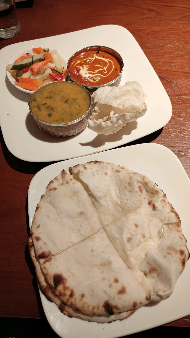 This was at Hyatt Regency hotel restaurant. I ordered cheese naan with the butter chicken. The dhal was tasty and the chicken was creamy. It doesn't look much but it was very filling.