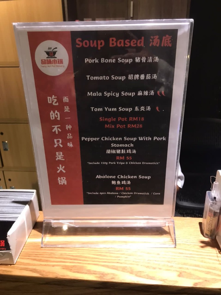 When you walk inside the shop, It looks like mini mart, selling all the prepared food ingredients and sauces (well packed in plastic container) for steamboat. They do take away too / order through Grab if you want to set up your own steamboat at home.