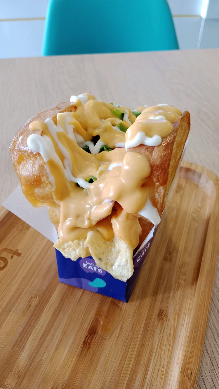 This is delivery order, so appearance not so cantik ya, plz ignore. My Ayam Expert friend recommended me to try Katsu Toast. Not bad, thick thick , crispy & tender chicken, rich ingredients . Especially love the fluffy, fragrant , buttery yet not oily toast, crispy side toast. Crispy until ur last bites. I think the Katsu seasoning here has more Garlic, that's why it's not my pcs of Katsu as i dun like Garlic & Onion😂😂😂, my fault. The takeaway packaging for Katsu Toast has room for improvement. Come try try. 芝士鸡排atas吐司, 可以来吃吃,吐司(面包体)本身好吃到~~~价格合理,份量够。这里不是只有买饮料的,也是可以吃饱的哦。😁😁