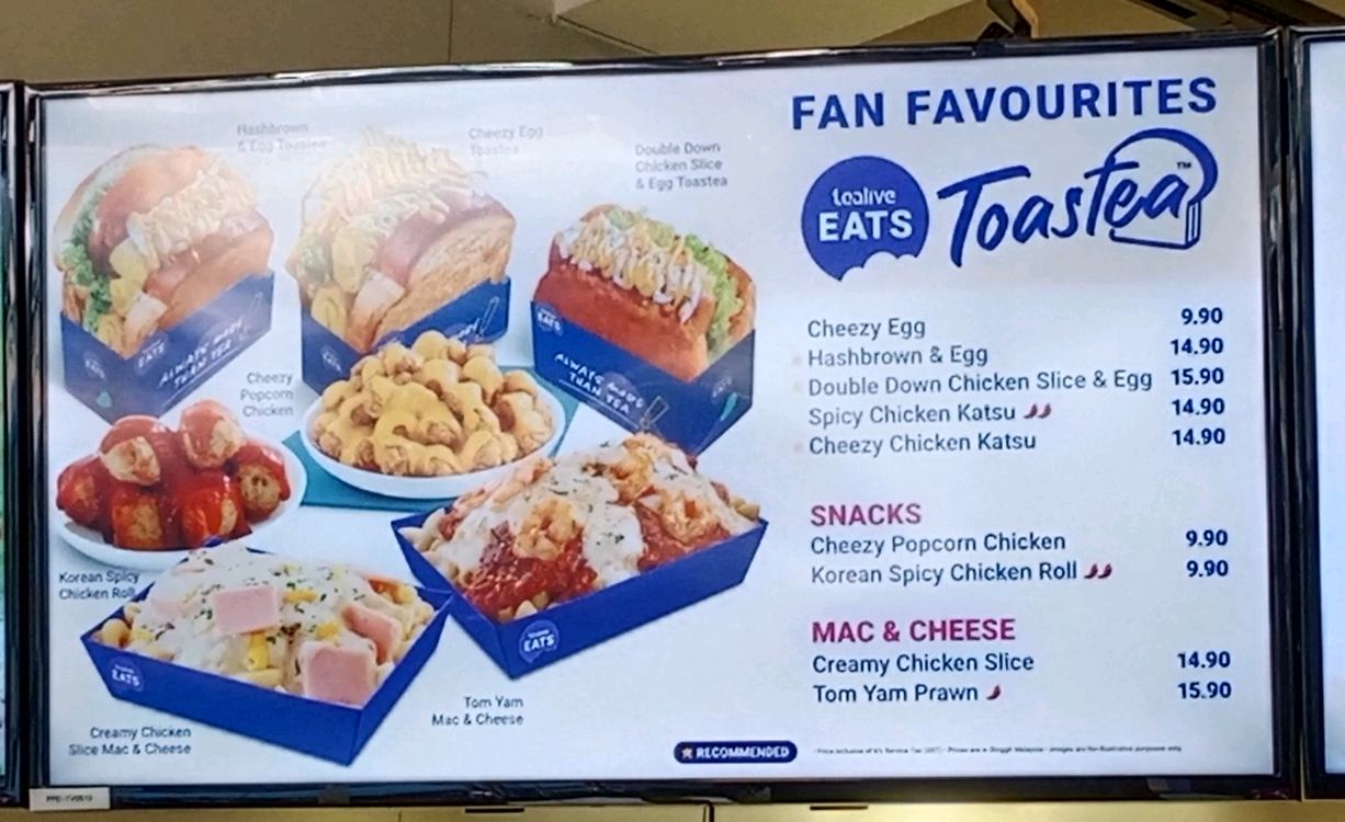 Cheezy Egg toastea nice😋😋😋 Big portion, fluffy omelette with crispy crispy buttery toast, wonderful !! Order at 3:30pm Signature brown sugar pearl milk tea, 50% sugar 50% ice still too sweet for me, i forgot liao the chewy warm pearls ody come with brown sugar. Pearls QQ good good, cover 2/5 cup, satisfy. Environment not bad. Just tat the machine sound is loud. Ventilation ok today. Price display including 6% tax dy, worth. Come, come. 珍珠好Q好多好好喝, 吐司好香好脆好好咬, 蛋蛋好嫩好松好好吃, 可以来喝来吃来谈谈。 Update: Different day, order at 5:15 pm. Signature Brown Sugar Milk Tea : Half ice, no sugar, nice combination, can taste the fragrance of the tea. But the pearls are quite hard this time.