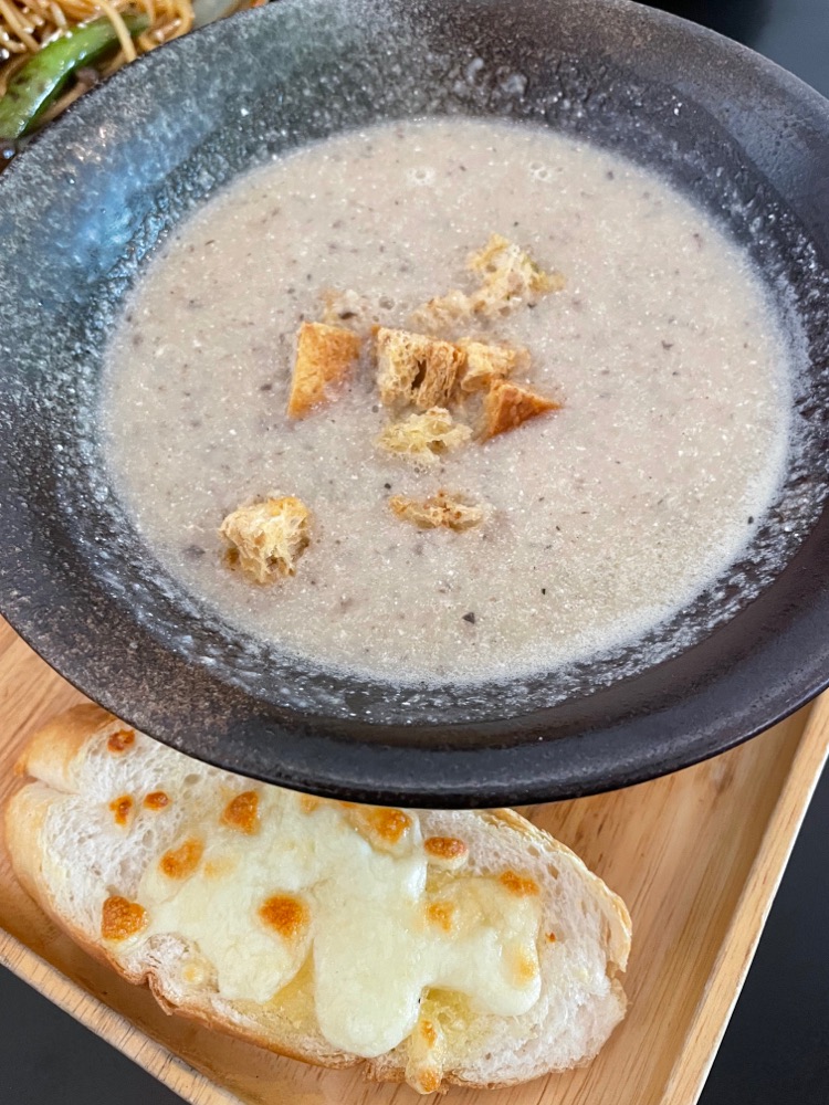Have no idea what to have for lunch and ended up turn in to this cafe. Korean fried chicken is juicy and crunchy with papaya salad Teriyaki mushroom pasta tastes abit sweet Wild 🍄 soup can be lil bit more creamy They are serving cakes and pastries too..
