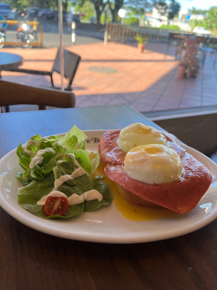 Egg benedicts is the food I ordered, so cute right xD like a breakfast monster smiling at you in the morning. The bread they serve is thick and soft, melted with butter.