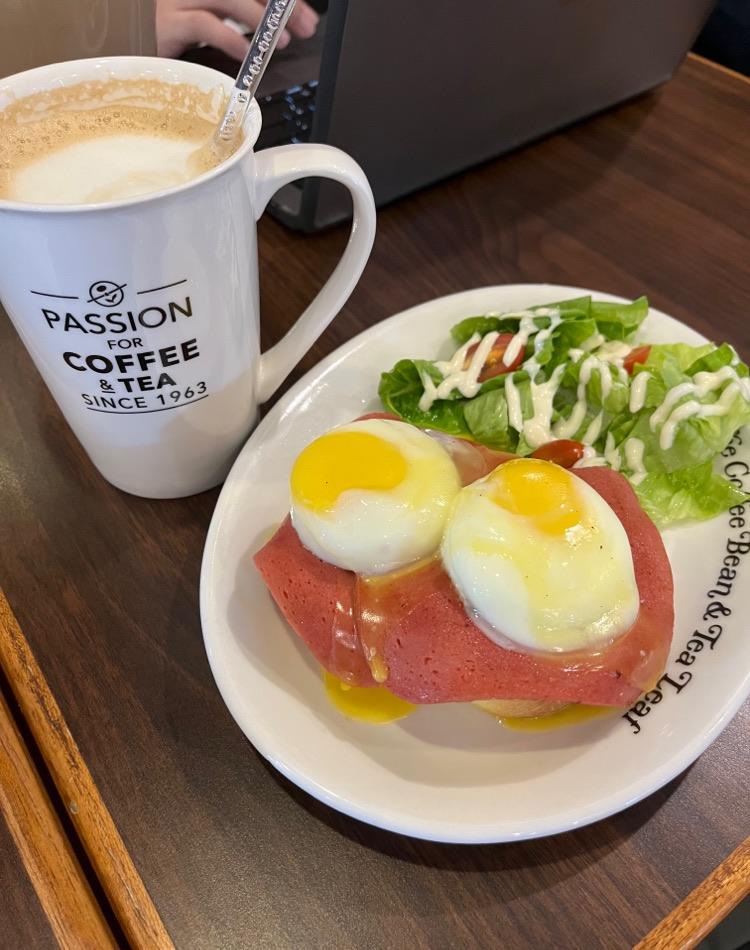 Coffe Bean now got a breakfast combo, order a breakfast dish can add on RM3.90 for tea, coffee, latte etc.