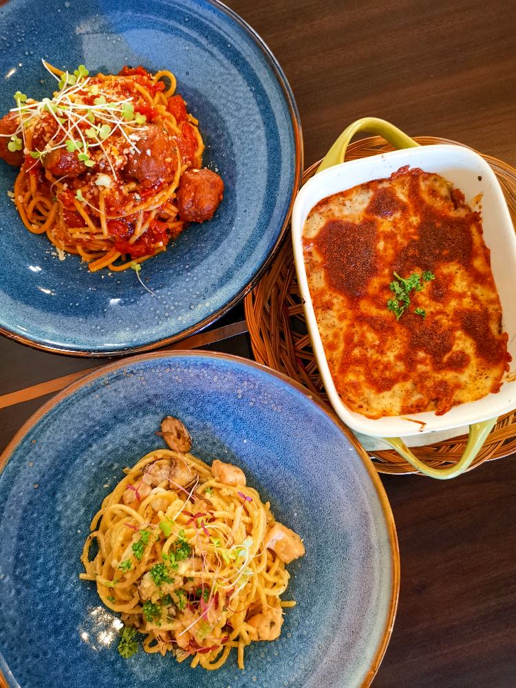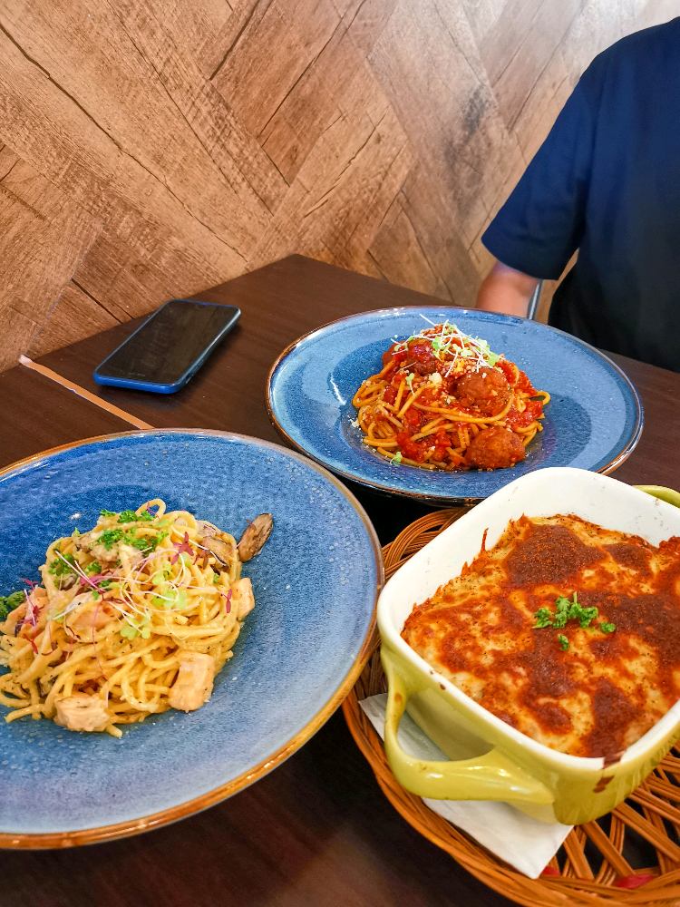 My siblings and I went to this place last December and may I just say that this is a great place but with inconspicuous location (at least for my siblings and I), cuz it's not a place we would stopped by or purposely go to, unless we literally have no plans at all for the day. So, what did we have...? 😏 1. Creamy Salmon Pasta - Generous amount of salmon chunks. Yes, it's not salmon shreds 🤤 Mushroom gave the umami flavour. 2. Tomato Meatball Pasta - Generous amount of meatballs, and not just the typical 3 pieces of meatballs, but my brother said it's slightly dry, overall still tasted good. 3. Pork Lasagna - Cheesy and juicy 😍 Piping hot, my sister hasfsfsfsffsfsf on her first few bites. 4. Earl Grey Cake - The earl grey very fragrant. I'm not typical an earl grey girl, but sharing a slice of cake between 3 person, definitely not enough 😂 Overall, everything was well-seasoned. Pasta was cooked just about right, I said this before and I'll say it again, one can never went wrong while just boiling the pasta alone. Anyways, they do have other food besides pasta, they have a variety of food on their menu. The aunty who was at our service, very sweet lady 💯