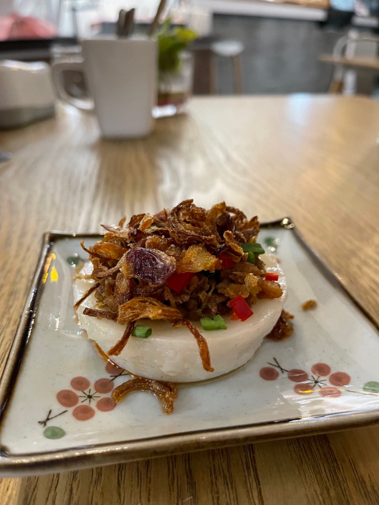 Had a dinner last night 11/5/22 to eat their steaks / salmon but they no longer serve main dishes like this due to small crowd. So they only have rice bowl, salads, pastas, and that’s all if I remember correctly? Basically my friends & I were looking for a dinner without carbs - fitness discipline 🤭 unfortunately there weren’t anything without carbs so I had to ask for an improvise. I asked the waiter if we can order the rice bowl without the rice, he said yup can. The only thing they can replace is to add more “vege”, if add more “meat” extra charges implied. So we went ahead and ordered salmon terriyaki as picture number 2, looks nice right? But the portion was as if it’s a lot, actually it took us finish this bowl less than 10 minutes 🥲 it’s not filling at all hahah and it cost us rm25 for this - price the same with / without rice. So does considered expensive la. The “cai tao kueh” (picture 1) taste alright, but it could taste better if it’s warm and it cost around Rm6 🙃 could easily get this at market for rm2. It’s ok different “feel” ma hahah once is enough. Pasta not much comment, basically taste good.