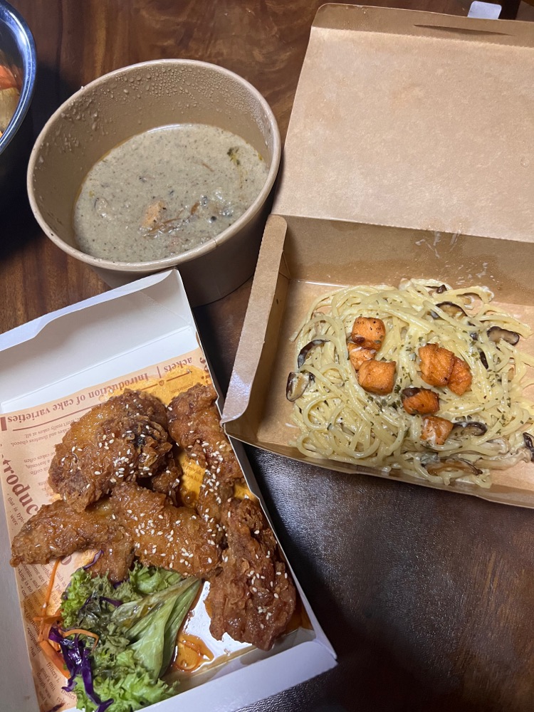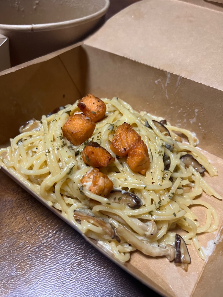 It’s Father’s Day yesterday, so I assumed most restaurants will be fully booked, thus decided to order from Foodpanda instead🫢 Husband was craving for creamy pasta, I suggested The Hive since we had quite good food experience at their restaurant most of the time. 🍝 Creamy Salmon Pasta Would be better if they use fettuccine instead😋 But the salmon chunks as you can see is just few small biji. Still, taste wise very tasty, portions was okay, anyway maybe dine in will be better😋 🍗 Honey Butter Wings Very tasty and crispy! Highly recommended 👍 🍄 Mushroom Soup Boleh lah, but abit too pricey. Overall all is good, recommended!🌟