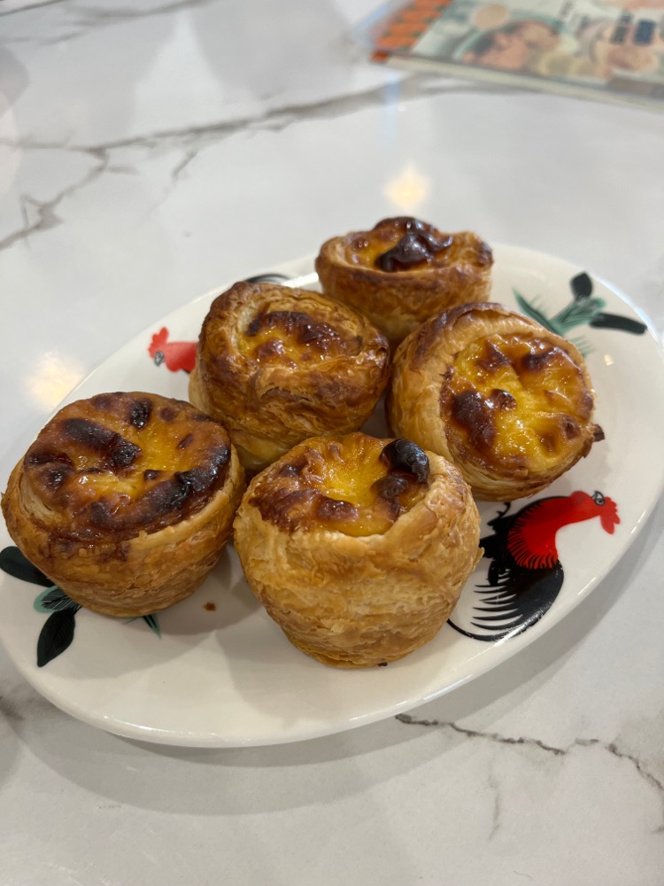 Egg tart Rm4.90 each hmm Skin ok many layers Egg inside very less and they seems microwave before serve..abit over heated