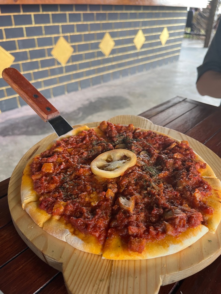 We ordered bolognese beef pizza , abc (not nice) and a mocktail .
