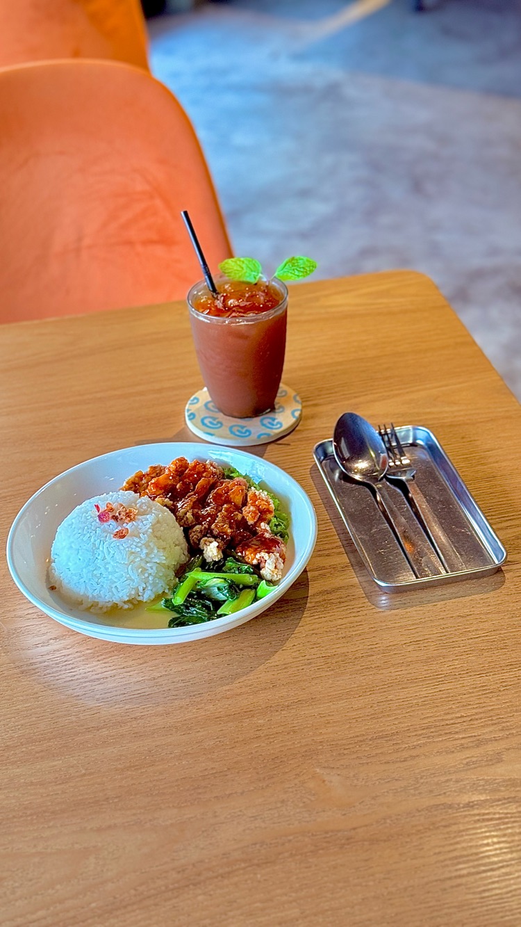 As for my meal, I ordered the buffalo sauce deep fried chicken with garlic veggie and rice and a cup of less ice passion fruit tea. The sauce was a bit spicy but tolerable, nothing special and drink was okay.