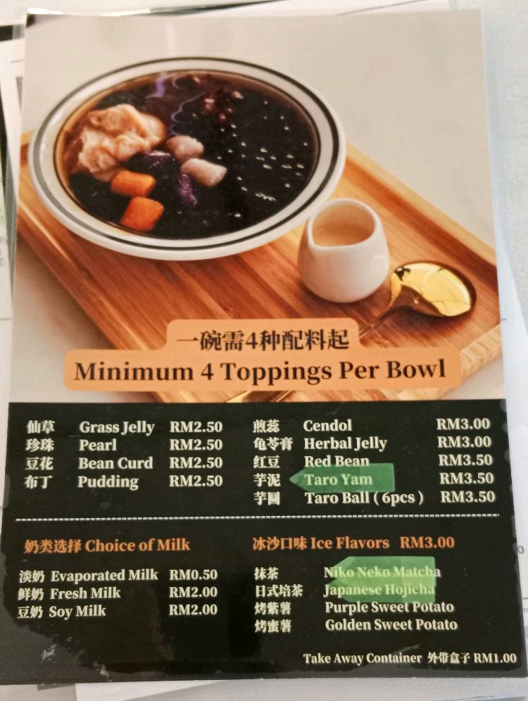 Went a few times for their wintermelon lemon (highly recommended if you need something that is refreshing) and now for for their dessert hehe There is some shaved ice at the bottom. I think can request for no ice or even change the base to pure milk or soy milk with extra RM2 if i am no wrong There are a few combinations to choose. I chose 4 toppings (bean curd, grass jelly, pearls and taro balls) for RM10.90. Their staffs are super friendly! Good place to have a small gathering