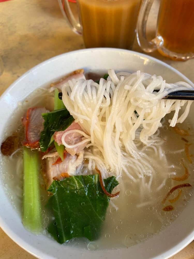 The clear soup is zhu sao 猪骚 && tasteless. I seldom will waste food but this time really cannot. The kon lao meehoon is also tasteless, my friend ate it by adding more chillies (their homemade chillies 🌶️ taste good)