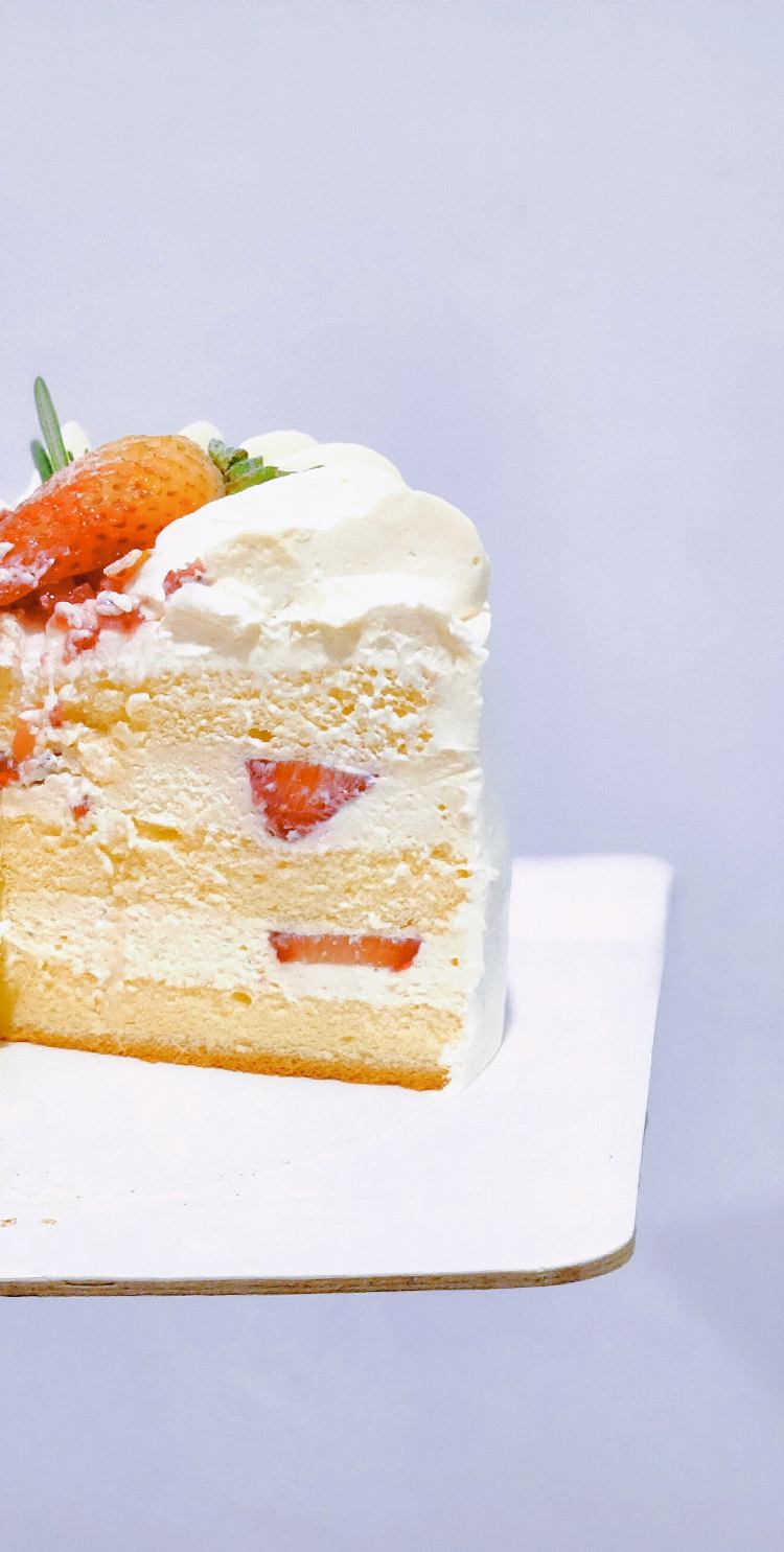 made with fluffy & moist sponge cake layers & filled with fresh Korean strawberries, covered in chantilly cream.
