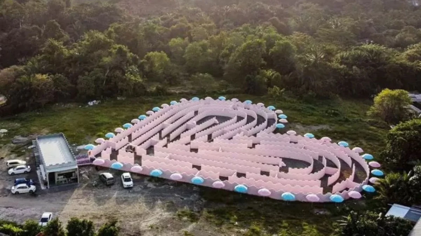 1 Heart Maze is the first of its kind in Sabah, featuring a heart-shaped design that leads visitors through a series of delightful twists and turns. The maze is adorned with vibrant pink decorations, creating a whimsical atmosphere perfect for taking stunning photos.